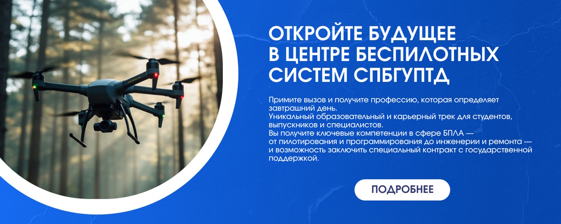 Здесь студенты технических, IT и дизайнерских направлений подготовки смогут применить свои знания на практике и освоить принципиально новую специализацию, получить компетенции в сфере пилотирования, программирования, ремонта и обслуживания БПЛА — ключевой отрасли XXI века.