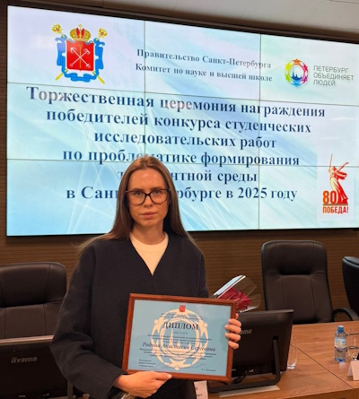 03 октября 2025г. состоялось награждение победителей конкурса студенческих исследовательских работ по проблематике формирования толерантной среды в Санкт-Петербурге, который проводит Комитет по науке и высшей школы Правительства Санкт-Петербурга.