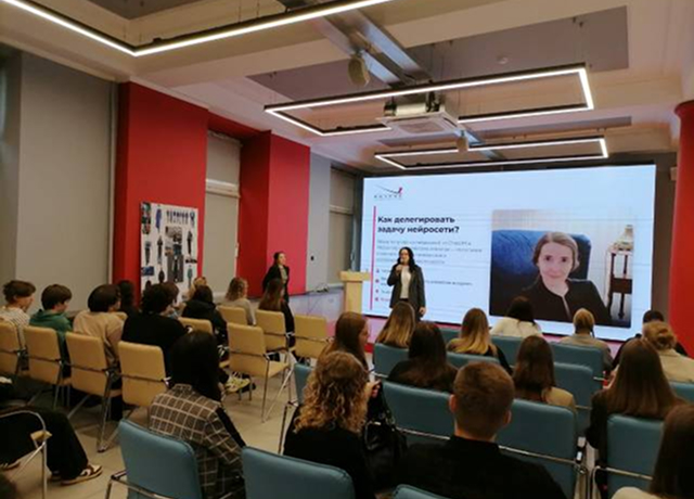 Участники мастер-класса также ознакомились с кейсами компании РИА «Волекс» по созданию промптов для различных бизнес-задач. Они получили профессиональные рекомендации по использованию ИИ для составления резюме и портфолио, написанию статей и — что особенно актуально для студентов выпускного курса — дипломных работ. Отдельный интерес аудитории вызвала тема создания визуального контента и практические результаты его применения в работе бренд-менеджера.
