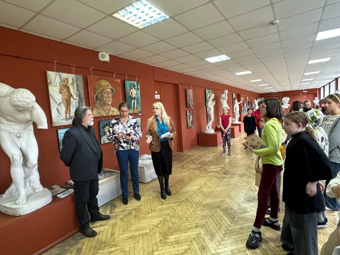 Они рассказали об истории возникновения кафедры, путях ее развития, учебном процессе, дисциплинах и выездных практиках, художественных мастерских и прикладных технологиях, перспективах трудоустройства выпускников. Также ребятам был показан фильм о жизни кафедры. Юные художники проявили интерес к экспозиции и выразили желание посетить мастер-классы, проводимые преподавателями.