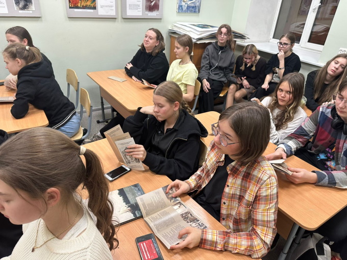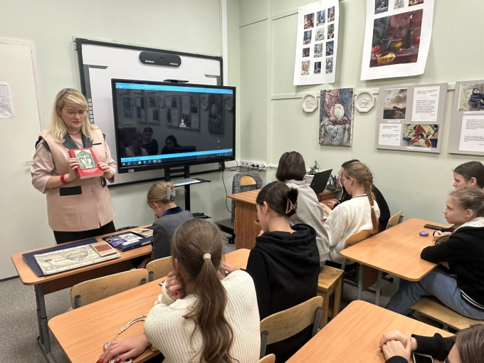 Д. О. Антипина провела профориентационную встречу с учащимися школы: показала видеоряд о жизни кафедры, каталоги проводимых ей выставок, сборники научных трудов по материалам конференций, раздала брошюры и буклеты. Юные художники собираются посетить наш университет и принять участие в мастер-классе. Выставка получила положительные отзывы преподавателей и учащихся школы.