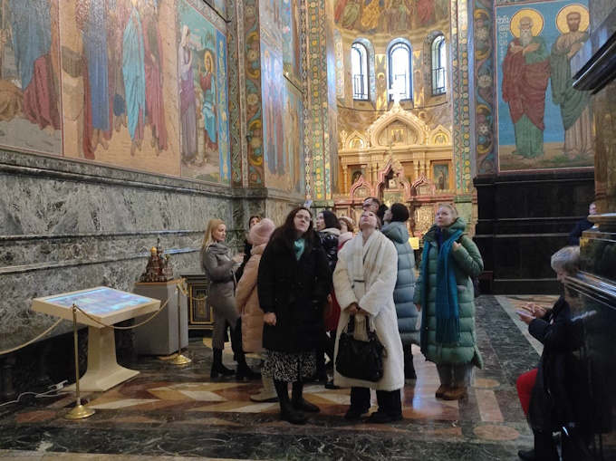 19 декабря 2024 г. студенты 4-ого курса кафедры монументального искусства под руководством старшего преподавателя И. И. Барановой посетили экскурсию в храме Спас-на-Крови и Часовне-музее храма Воскресения Христова, где ознакомились с мозаичным убранством храма и экспозицией уникальной выставки «Мозаика судьбы», приуроченной к 150-летию со дня рождения Владимира Фролова, выдающегося русского художника-мозаичиста. На выставке представлены уникальные материалы, многие из которых впервые показаны широкой публике: мозаики, эскизы, документы и фотографии из Мозаичной мастерской Российской академии художеств, музея «Исаакиевский собор», Российского государственного исторического архива и собраний потомков Фролова.