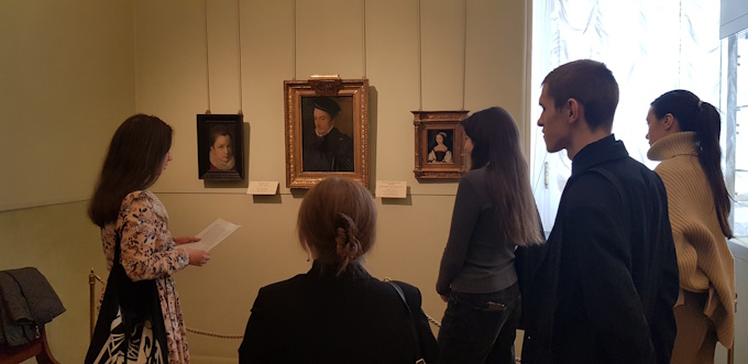Магистры готовят и проводят лекции-экскурсии об историческом костюме. Занятие посвящено национальному своеобразию костюма эпохи Возрождения в произведениях западноевропейского изобразительного искусства. Не по слайдам, а в обстановке прекрасного музея и в окружении реальных посетителей смогли попробовать свои силы в качестве экскурсоводов.