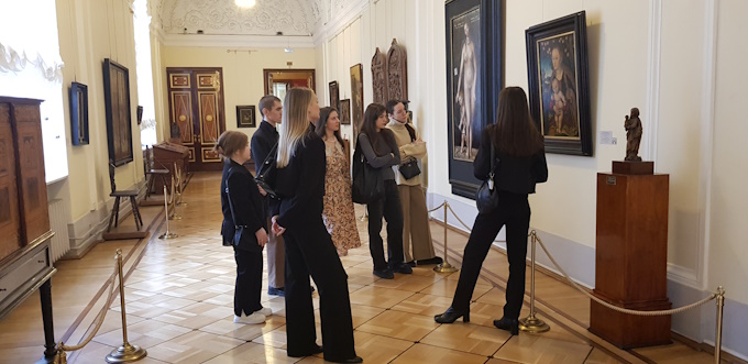 Студенты группы 1-МГ-41 (магистратура по направлению История и теория моды) на практическом занятии в Государственном Эрмитаже. Преподаватель — доцент кафедры ИТИ Кузнецова М.М.