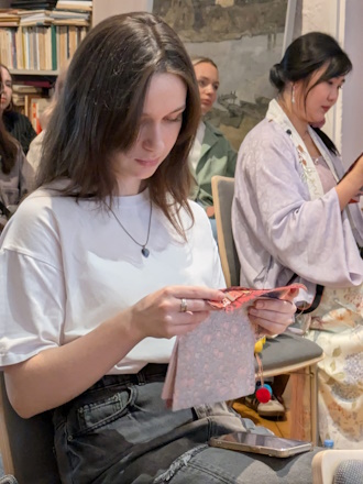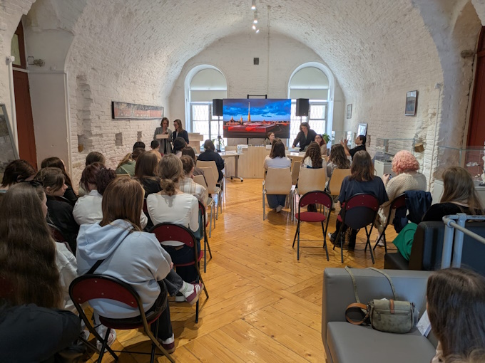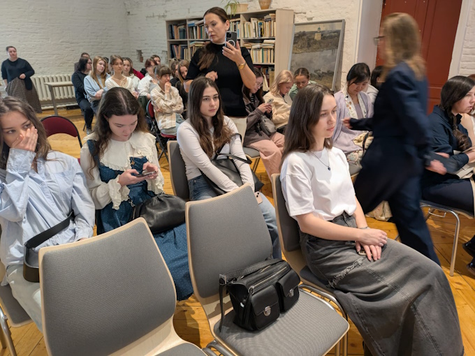 Это мероприятие было задумано и проведено организаторами выставки специально для студентов и аспирантов профильных учебных заведений Санкт-Петербурга (СПГУПТД и СПбГУ). Молодые художники по текстилю встретились с настоящими знатоками текстильного дела, сотрудниками ведущих музеев СПб и Иваново. Разгорелась настоящая дискуссия! Поднимались острые вопросы: как сегодня молодежь относится к традиционной одежде, что такое китч, и где проходит тонкая грань между тем, что можно носить и не рекомендуется, что такое русская идентичность в костюме и через что она проявляется сегодня, какую роль в этом играет ткань, ее орнамент и расцветка... Самые активные участники дискуссии были награждены памятными подарками организаторов выставки.