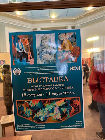C 18 февраля по 11 марта 2025 г. в рамках профориентации состоялась выставка работ студентов кафедры монументального искусства в ДХШ «Александрино», Автово.