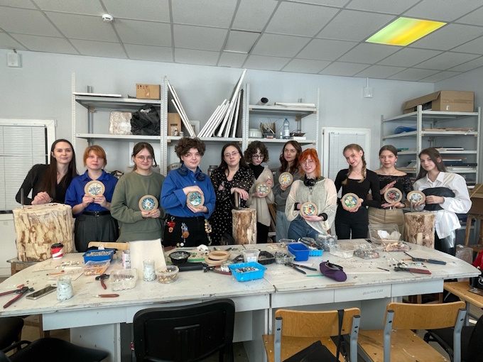 26 февраля 2025 г. И.И. Баранова провела мастер-класс по мозаике для учащихся КТМУ СПбГУПТД.