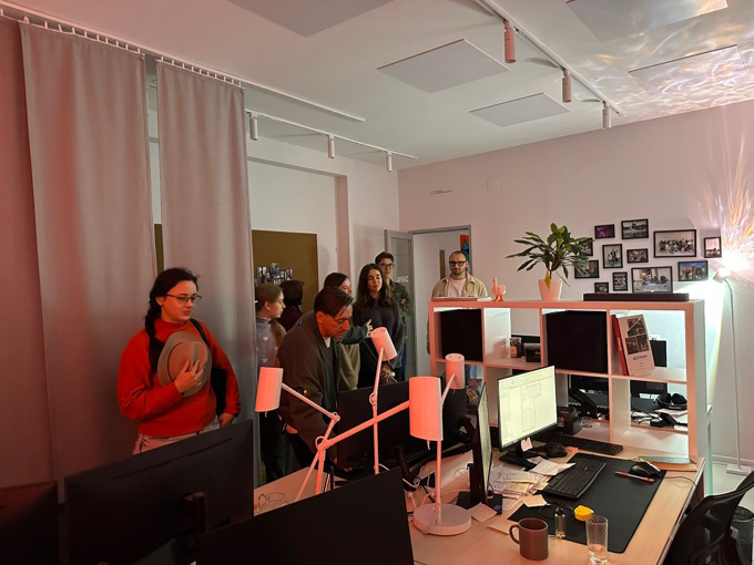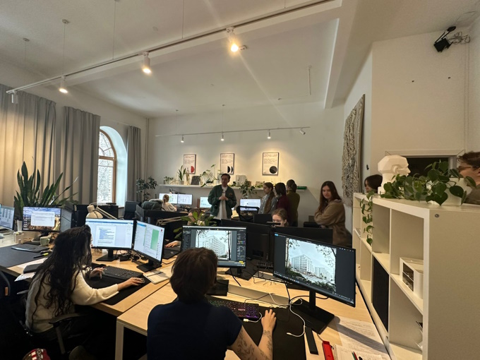 Архитектор и руководитель студии Роман Игоревич Захаров подробно познакомил студентов с направлением деятельности архитектурной мастерской. Он рассказал об организации работы студии, основных этапах проектирования, распределении функций между сотрудниками команды, а также о принципах взаимодействия с заказчиками. Кроме того, участники познакомились с оснащением рабочих мест и спецификой организации среды: от зон коллективной работы до индивидуальных проектных столов. Во время экскурсии студентам продемонстрировали архитектурные макеты, используемые в процессе проектирования.