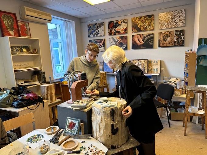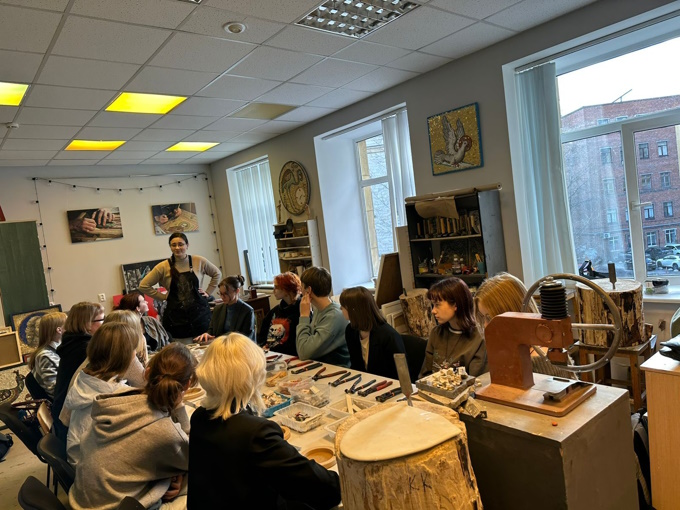 Они познакомились с преподавателями, увидели мастерские, узнали о специфике работы художника-живописца. Затем учащиеся отправились на мастер-классы по мозаике и горячей эмали.