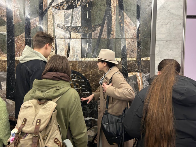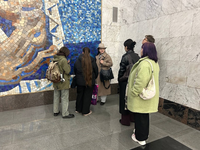 03 ноября 2025 года старший преподаватель кафедры монументального искусства Баранова Ирина Игоревна организовала и провела для студентов третьего курса кафедры монументального искусства учебную экскурсию, посвященную мозаичным панно в станциях Санкт-Петербургского метрополитена.