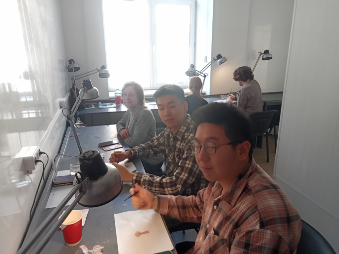 Заведующий кафедрой, доцент Д. О. Антипина рассказала гостям о специфике работы художников-живописцев, а М. С. Давыдова провела мастер-класс по эмали. Студенты остались довольны визитом и получили в подарок декоративное изделие — ключ, изготовленный и расписанный своими руками.