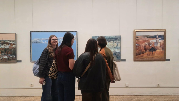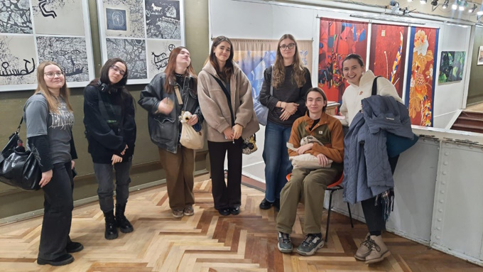 09 декабря 2025 г. студенты 2-го и 3-го курсов кафедры монументального искусства посетили с экскурсией, организованной старшим преподавателем М. А. Докучаевой, выставку художников по текстилю Лихачёвых в Союзе художников. Ребята познакомились с несколькими текстильными техниками, а также живописными полотнами и графическими работами.