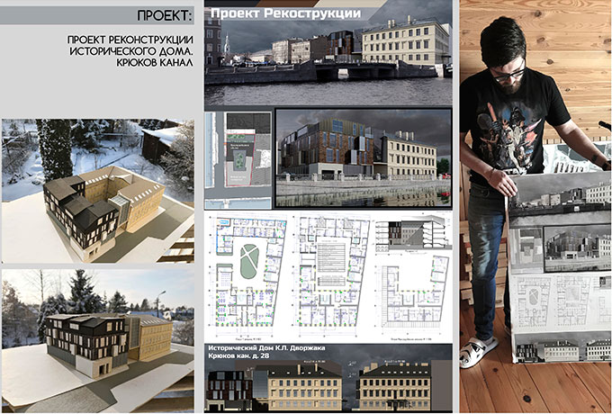Тема работы: Преображение Санкт-Петербурга. Вместо тотального сноса постройки, предложил идею реконструкции дома