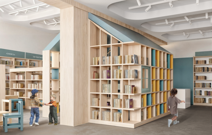 На иллюстрациях: проект победитель — библиотека им. С.В. Михалкова в Сестрорецке. (Кристина Гриненко, Асаль Маликова, Грета Манукян, куратор проекта ー доцент Института дизайна пространственной среды СПбГУПТД Ирена Львовна Зорина). Поздравляем куратора команды — победителя, желаем дальнейших творческих успехов!