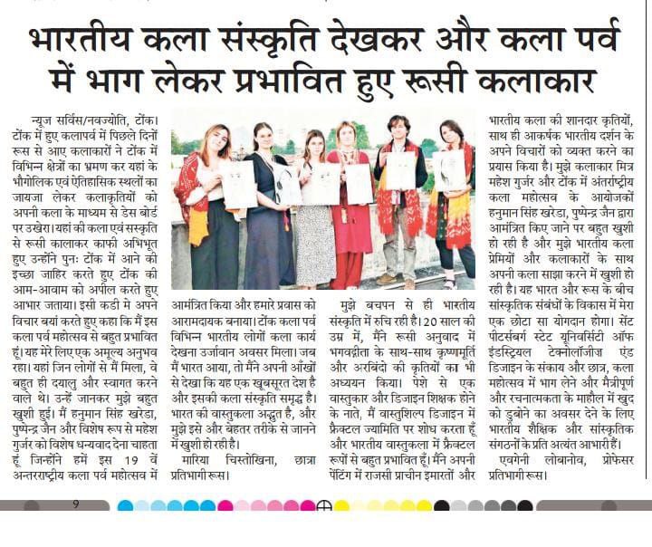 Все члены команды выражают глубокую признательность индийскому художнику Махешу Гурджару и директору колледжа искусств Хануману Сингху, а также всем членам оргкомитета за радушный прием.