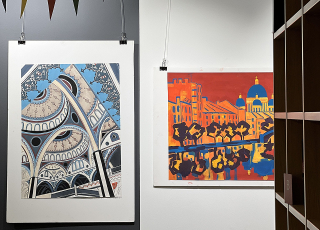 Художники представляли авторские архитектурные композиции, шрифтовые ритмы, переосмысляли городские пейзажи и натюрморты через форму и цвет. Кроме того, студенты интерпретировали творчество признанных мастеров импрессионизма и модерна с помощью компьютерных технологий.