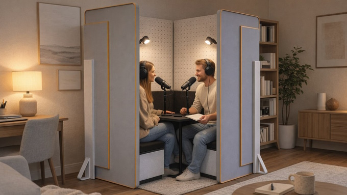 Студентка разработала дизайн компактной модульной акустической кабины для записи звука в домашних условиях. Авторы подкастов и дикторы смогут быстро собрать конструкцию при помощи панелей с магнитным соединением.
