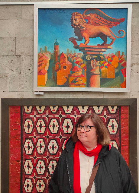 - доцент кафедры дизайна интерьера и оборудования Зорина Ирена Львовна представила пейзаж, выполненный в технике масляной живописи и изображающий итальянский город Виченцу;