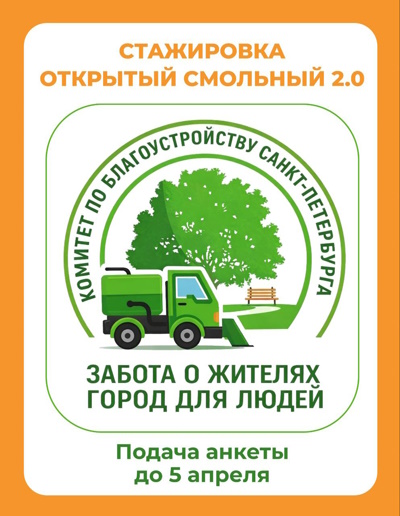 Открыт прием анкет на стажировку «Открытый Смольный 2.0», которая пройдет в Комитете по благоустройству города.