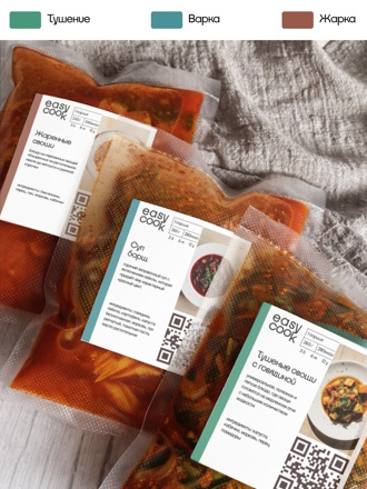 Для работы нужно поднести QR-код на пакете к считывателю на панели мультиварки. Устройство автоматически выберет нужную программу. Далее остается только следовать инструкциям на экране. Программа подскажет, когда добавить воду и специи.