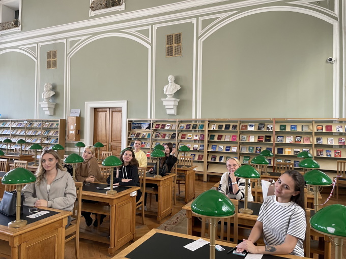 Кроме того, группа посетила универсальный читальный зал, библиотеку Вольтера, Ленинский читальный зал и зал справочной информации и электронных ресурсов.