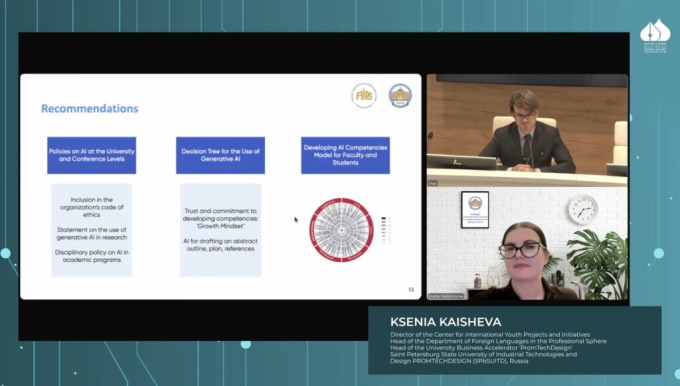 21 ноября 2024 года заведующая кафедрой иностранных языков в профессиональной деятельности, Кайшева Ксения Владимировна, представила результаты исследования на VI Международной конференции «Human-AI Synergy for Effective English Language Teaching of Science Communication in a Multidisciplinary, Multicultural Context», организованной в Московском физико-техническом институте (МФТИ).