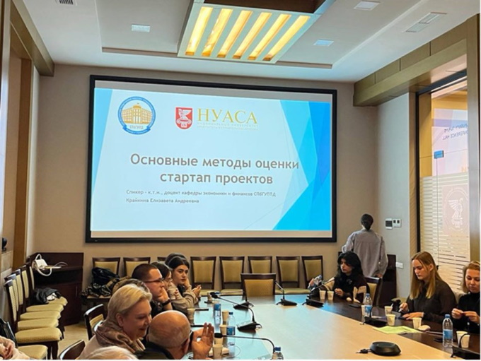 Крайкина Елизавета Андреевна рассказала об основных методах оценки стартап проектов, а также показала стартап проекты которые реализуются обучающимися Института экономики и социальных технологий в акселерационной программе университета ПРОМТЕХДИЗАЙН.
