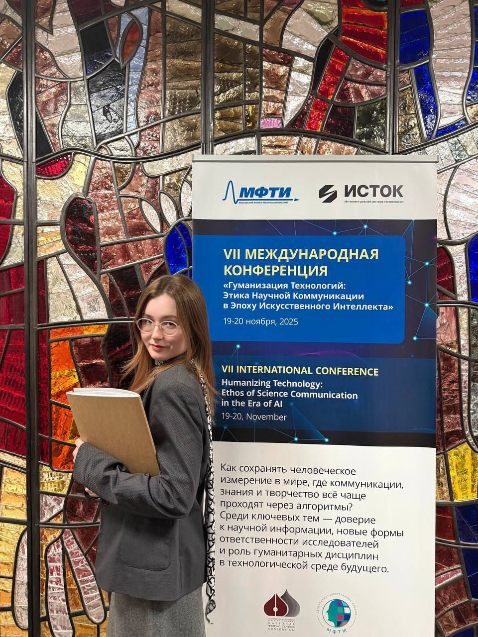 С 19 по 20 ноября 2025 г. прошла VII Международная конференция «Гуманизация технологий: этика научной коммуникации в эпоху искусственного интеллекта», в которой приняли участие ведущие преподаватели кафедры иностранных языков в профессиональной деятельности и аспиранты кафедры математики Балашов Дмитрий Сергеевич и Мокроусова Анна Владимировна.