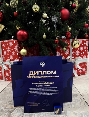 Среди удостоенных высокой чести — магистрант 1 курса кафедры бухгалтерского учёта и аудита Авенович Мария Романовна. Ей был вручен диплом стипендиата Правительства Российской Федерации. Право на получение этой престижной государственной стипендии предоставляется наиболее выдающимся студентам, продемонстрировавшим исключительные успехи в учёбе и научно-исследовательской деятельности. Мария полностью соответствует этим высоким критериям, что подтверждается её безупречной академической успеваемостью и серьёзными научными достижениями.