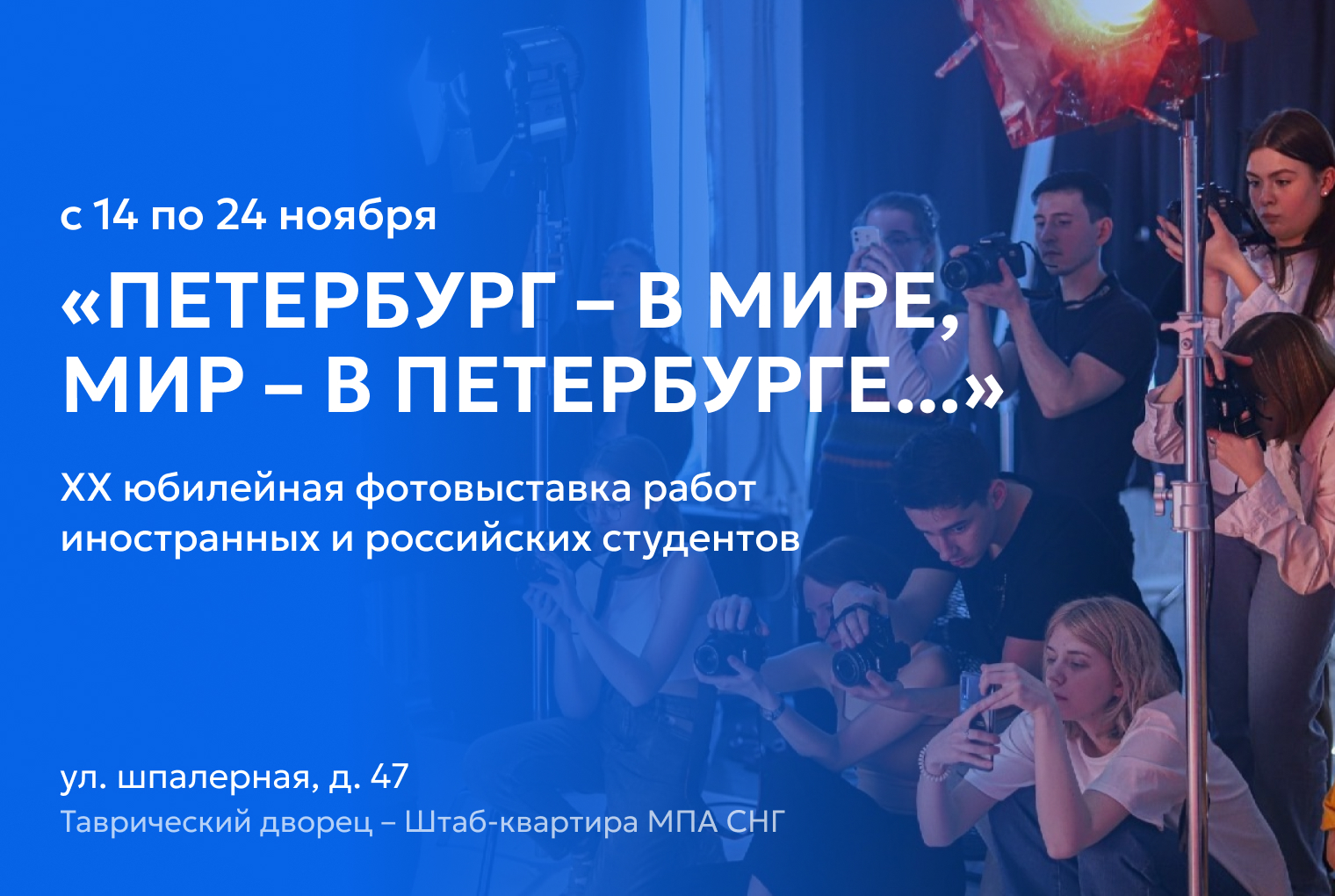 С 14 по 24 ноября 2025 года в Санкт-Петербурге пройдет XX юбилейная фотовыставка работ иностранных и российских студентов «Петербург – в мире, мир – в Петербурге...».