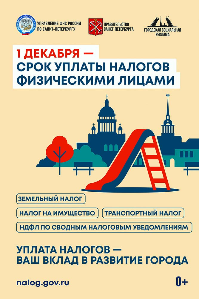 Межрайонная ИФНС России №9 по Санкт-Петербургу информирует о необходимости уплатить имущественные налоги до 01 декабря 2025 года.