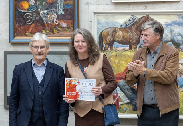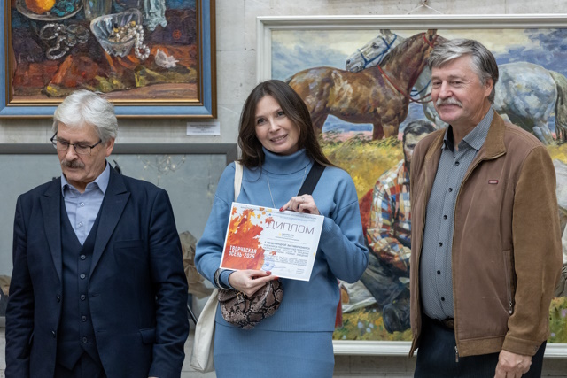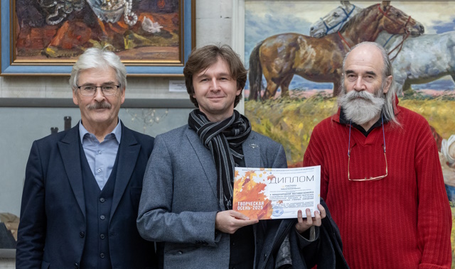 Обладателем гран-при 10 сезона «Творческой осени» и денежного приза в размере 100 тысяч рублей от Университета промышленных технологий и дизайна стал художник-живописец, старший преподаватель кафедры живописи и композиции Академии художеств имени Ильи Репина Геннадий Исаев. Его конкурсное произведение «Портрет Александра Федорова» посвящено бойцу, участнику СВО, погибшему в 2024 году.