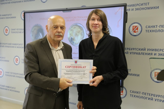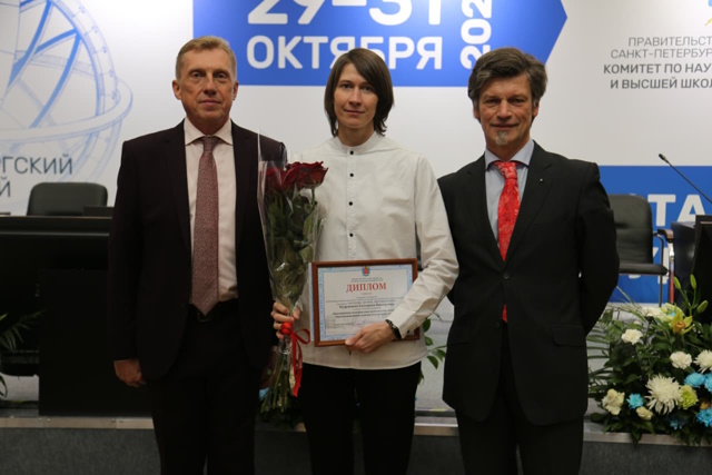 Конкурс проводился Комитетом по науке и высшей школе Правительства Петербурга. Награждение состоялось в КВЦ «Экспофорум» в рамках Санкт-Петербургского международного научно-образовательного салона. Екатерина представила на конкурс научную работу по биозащитной модификации волокнистых материалов наночастицами медь-серебро.
