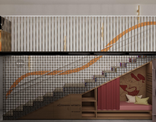 Сердцем новой библиотеки станет двухэтажный книжно-игровой комплекс «Чердак современной культуры». Здесь будут располагаться цифровой сервис с архивом традиционных игр народов России, комикс-зона и гамак-коворкинг, в котором ребята смогут погрузиться в чтение и отдохнуть.