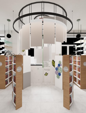 В проекте воплощена концепция «Через линии к букве». Она отражает точки пересечения линий петербургского метрополитена и творчества детских писателей: в новой библиотеке каждая такая «линия» будет представлять отдельную зону с уникальным цветом и своей литературной тематикой.