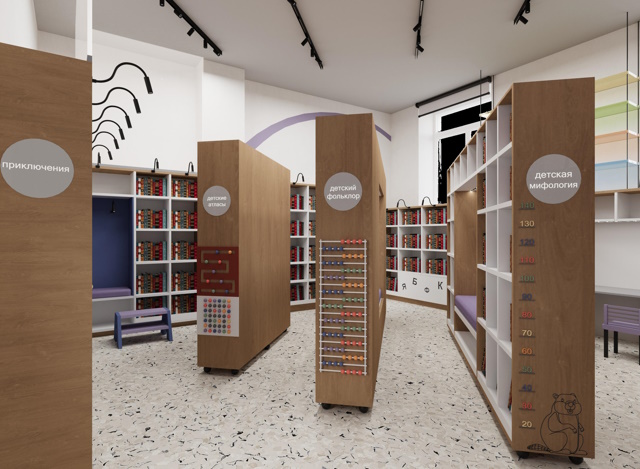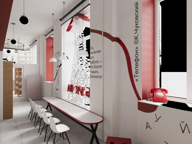 Дизайн вдохновлен детскими писателями и включает в себя двухэтажный книжно-игровой комплекс, исследовательский центр, мастерскую, залы для интерактивных выставок и изучения краеведения.