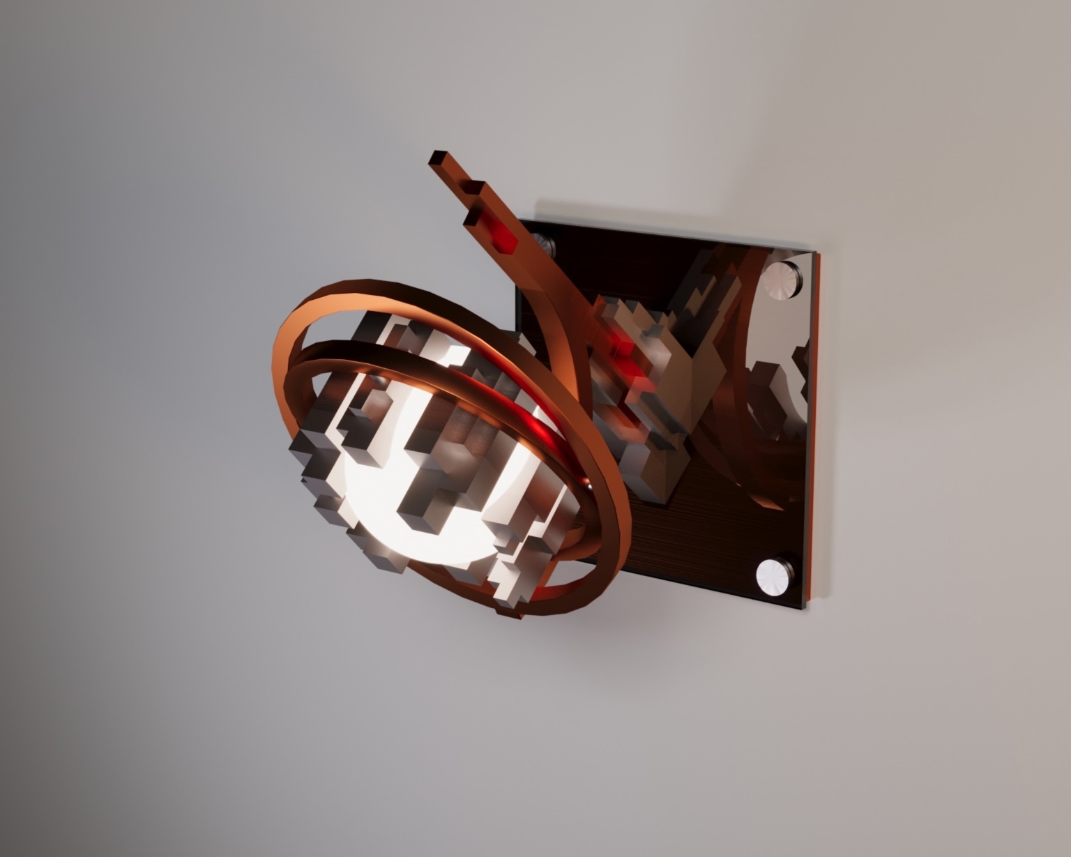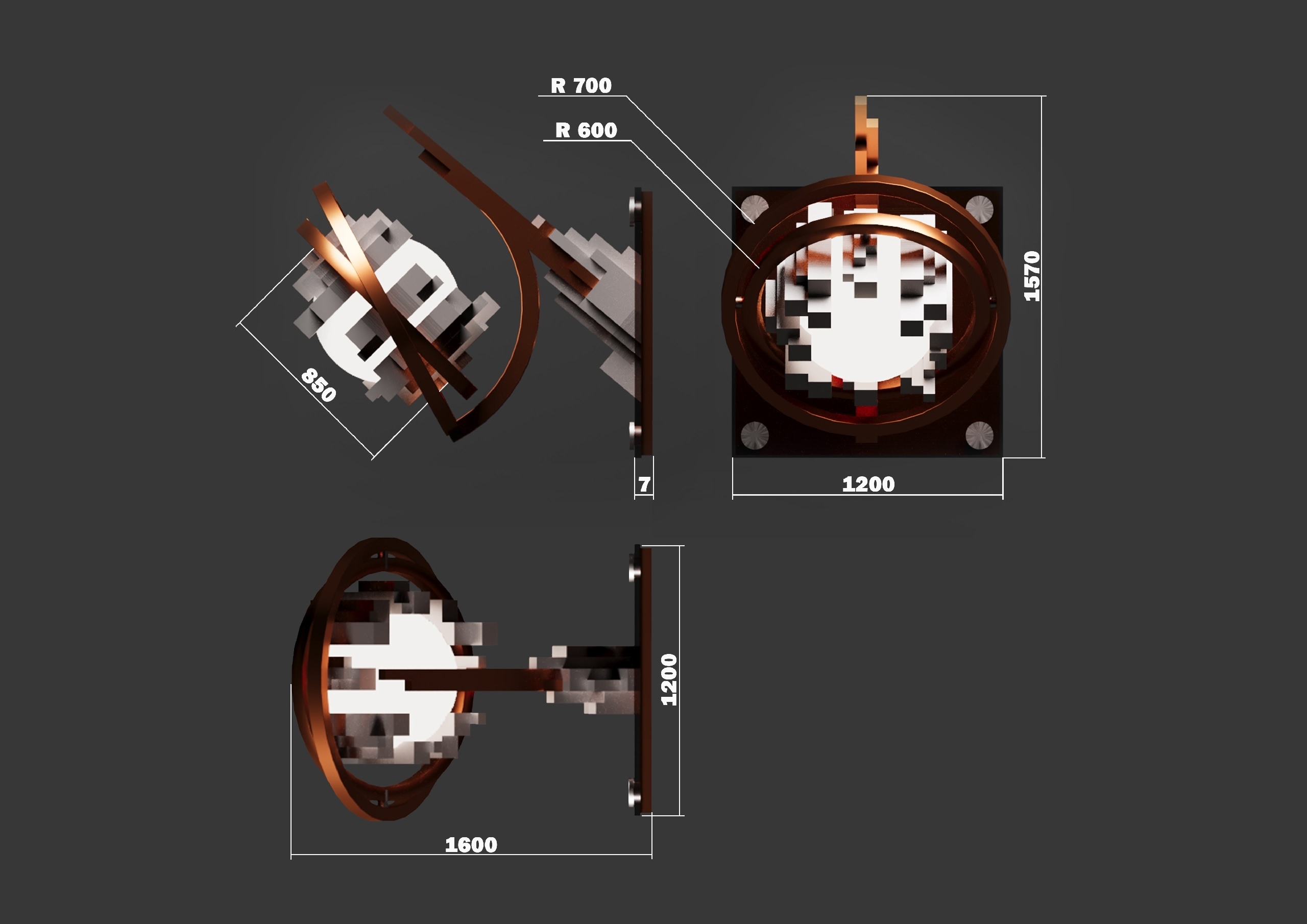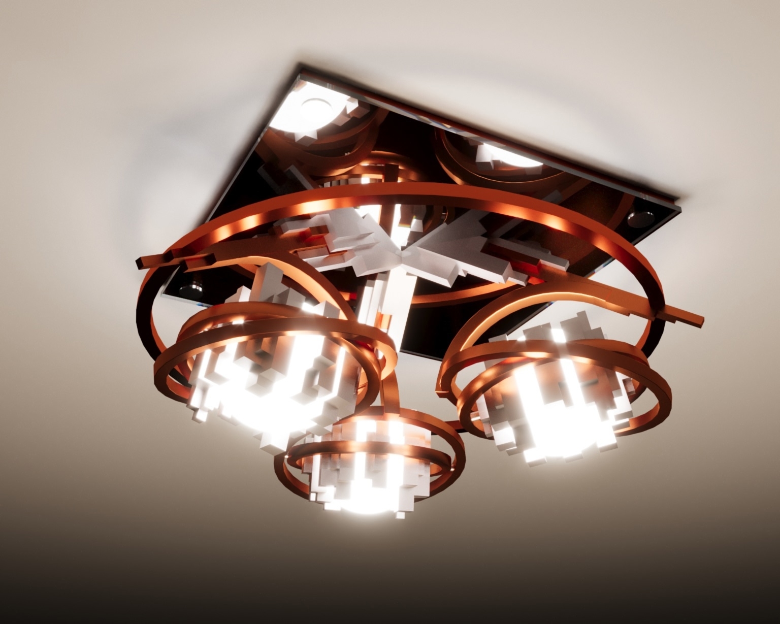 Егор Володин представил на конкурс проект комплекта из люстры и настенного светильника, в стиле конструктивизм, популяризирующих тему освоения космоса.