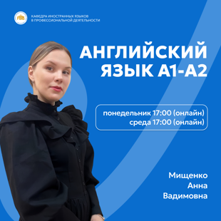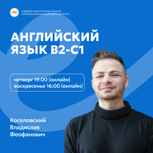 Обучение английскому языку (A1—C1) проходит в небольших группах с акцентом на живое общение. Студенты развивают навыки устной речи, аудирования, чтения и письма, уделяя внимание правильному построению фраз и расширению словарного запаса. Грамматику они изучают в прикладной и доступной форме, а тематика занятий подбирается с учетом интересов студентов. Заниматься можно онлайн или в гибридном формате: теоретический материал изучается онлайн, а разговорная практика проходит в аудитории.