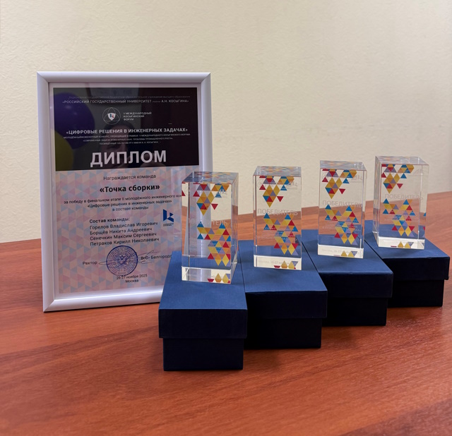 Команда студентов кафедры машиноведения Института информационных технологий и автоматизации СПбГУПТД «Точка сборки» стала победителем молодежного инженерного конкурса «Цифровые решения в инженерных задачах», который проходил в рамках V Международного Косыгинского форума «Современные задачи инженерных наук. Проблемы промышленного роста».