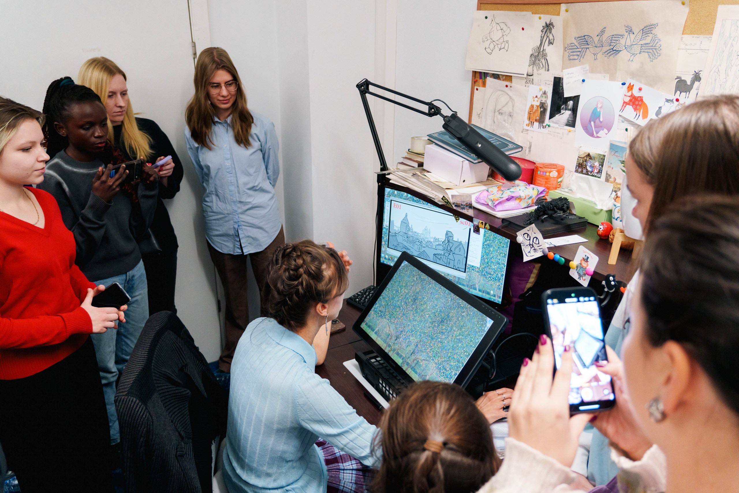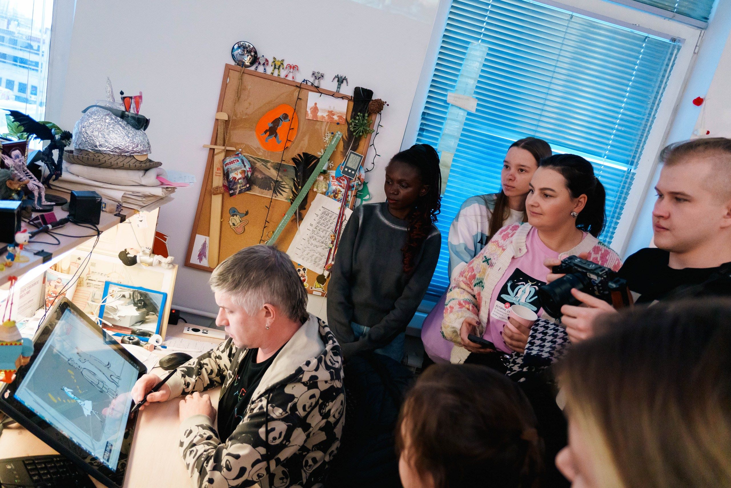Экскурсия в студию анимационного кино «Мельница» стала настоящим открытием: участники увидели, как рождаются любимые зрителями персонажи и истории. Гостям продемонстрировали ключевые этапы создания мультфильмов — от первых эскизов до финальной анимации, — а также предоставили возможность пообщаться с профессионалами индустрии и узнать об их повседневной работе.