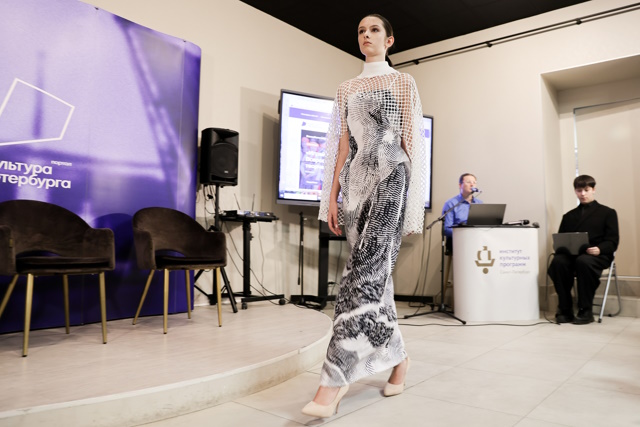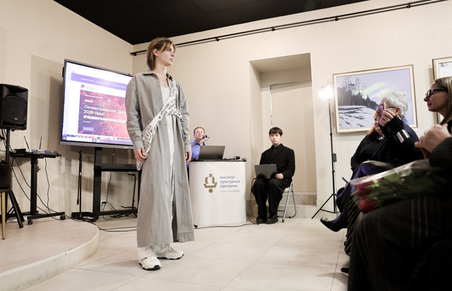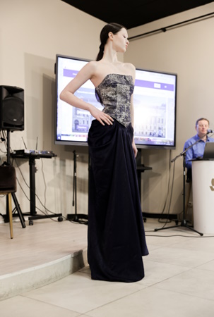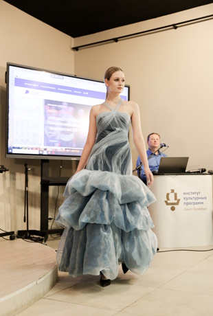 Живопись и мода в этот день тесно переплелись. Вернисаж состоял из пресс-конференции и показа моделей одежды, созданных студентами и выпускниками СПбГУПТД. Гостей медиацентра приветствовала заместитель директора Института культурных программ Ирина Кизилова, напомнившая присутствующим о многолетнем сотрудничестве двух учреждений культуры. После чего заведующая кафедрой дизайна костюма СПбГУПТД Любовь Джикия представила коллекцию, посвященную зиме и Татьяниному дню. Ася Акиншина представила коллекцию «Тундра», вдохновленную природой Байкала и русского Севера. Дизайнер Аскар Ахметгареев — коллекцию «Обскура», концепция которой — манифест тайного знания. Источником вдохновения для создания коллекции одежды «Байкал» Екатерины Куликовой послужили величественная и прекрасная природа, чистота и великолепие озера.