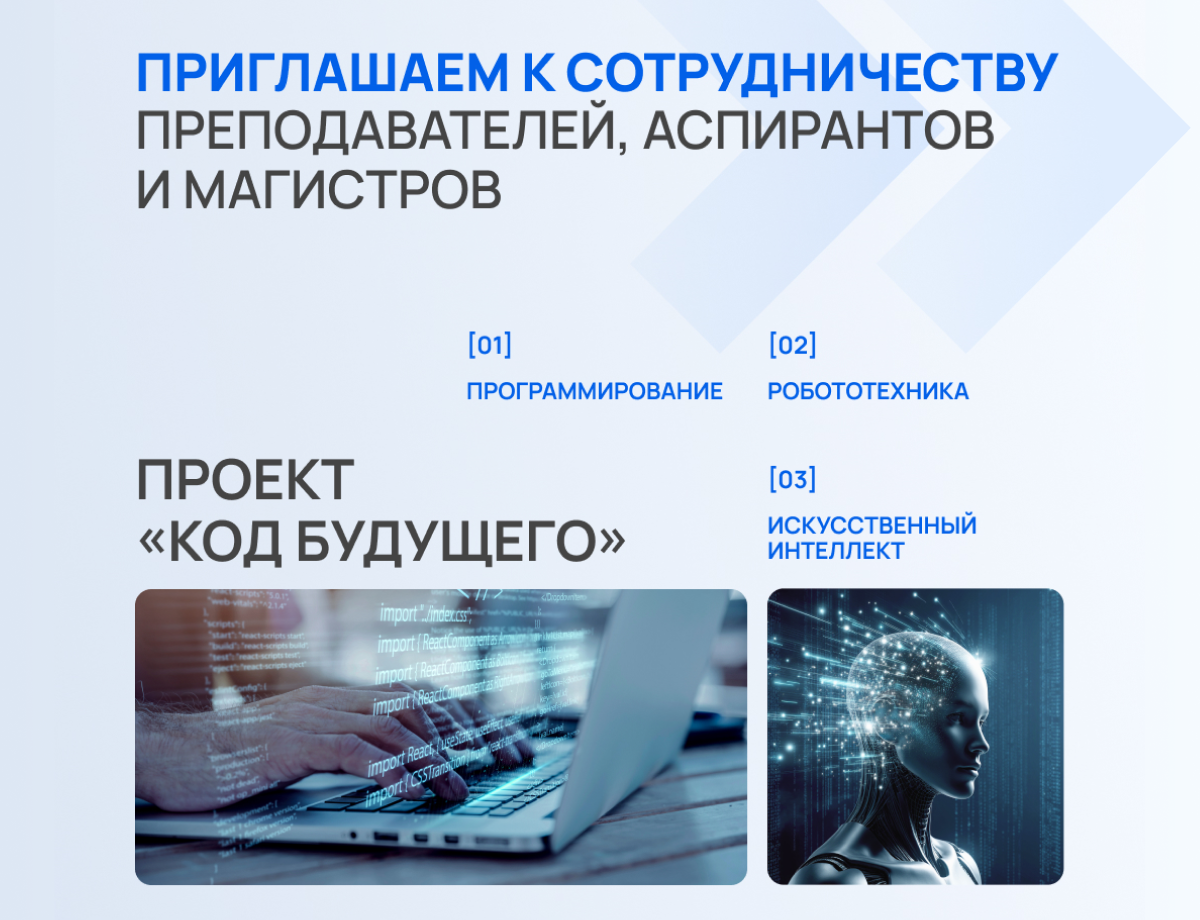К сотрудничеству в проекте «Код будущего» приглашаются преподаватели, аспиранты и магистры