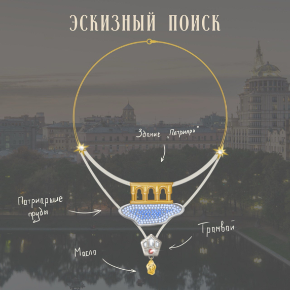 Колье, вошедшее в парюру, было вдохновлено образом Патриарших прудов, которые занимают особое место в романе Булгакова «Мастер и Маргарита».