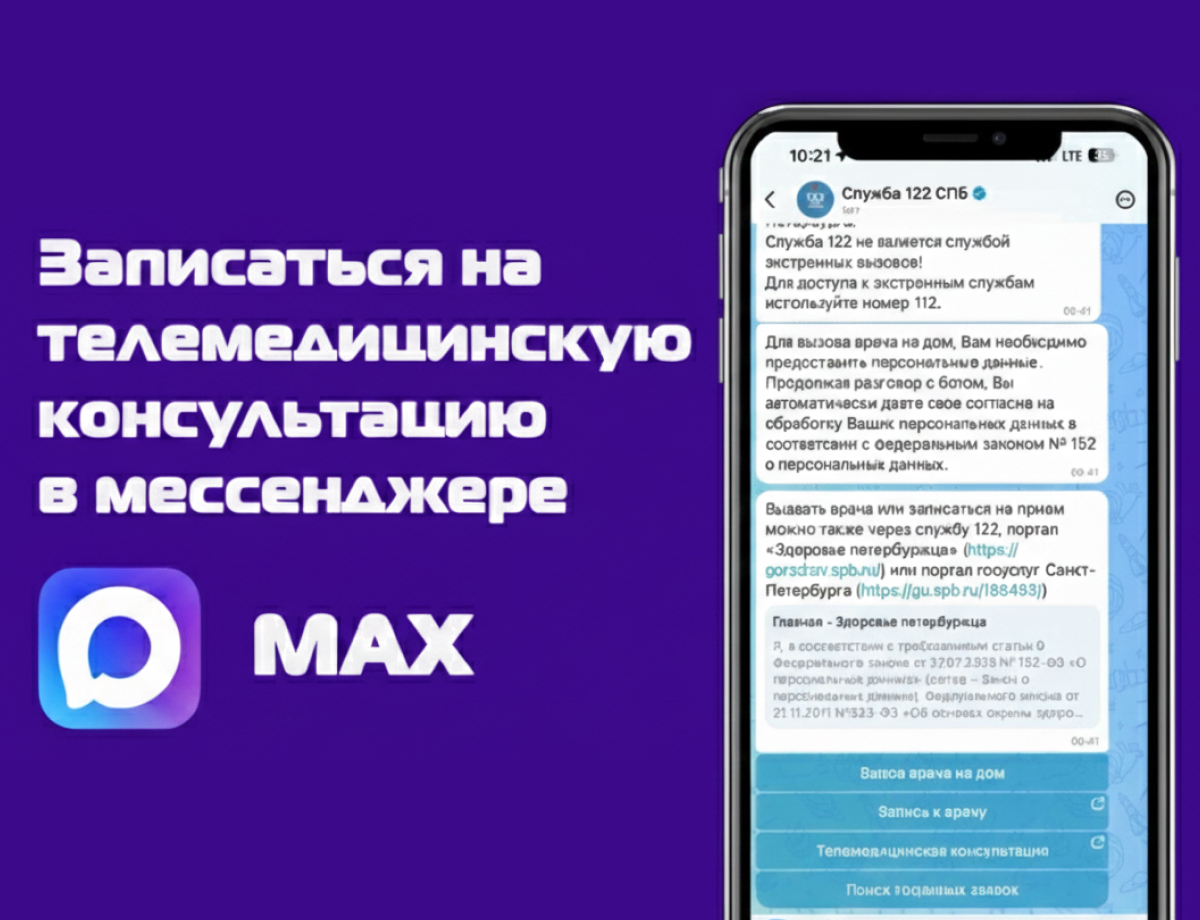 Заботиться о себе стало еще проще. Теперь записаться на прием, вызвать врача на дом или получить медицинскую консультацию можно через национальный мессенджер МАХ.