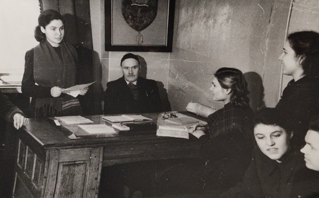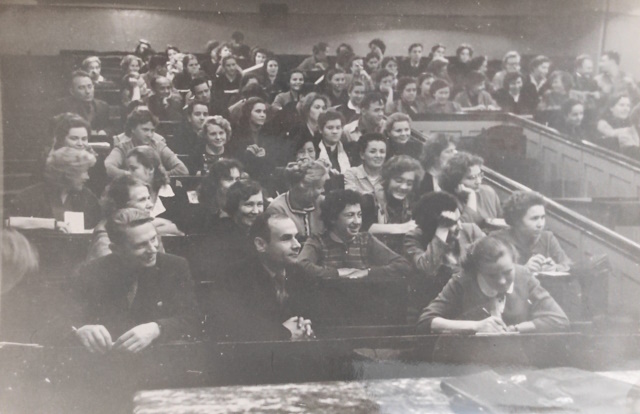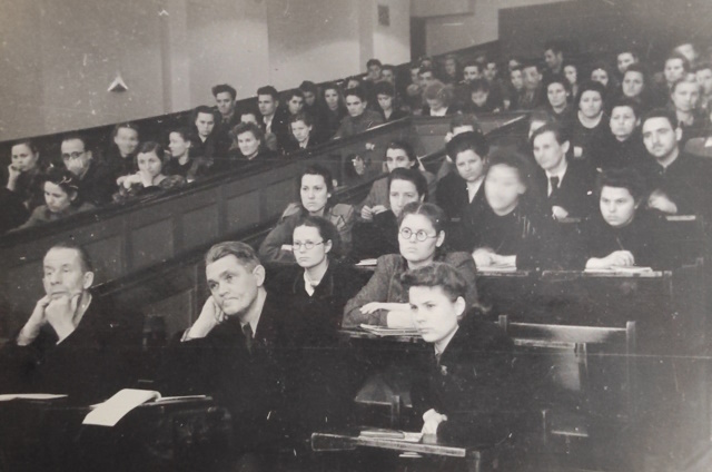 Заседание СНО кафедры химической технологии волокнистых материалов. 1952 год.