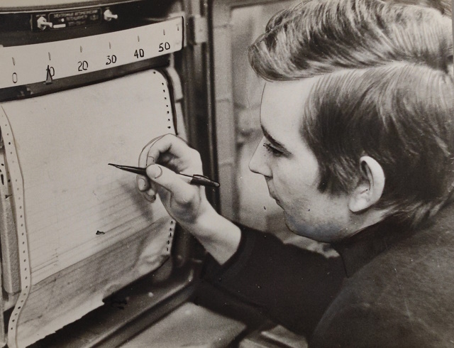Студент Николай Ашнин (будущий проректор по учебной работе) за работой в СКБ.