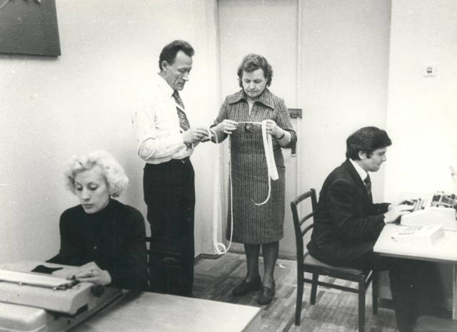 Евгения Златорунская активно использует ЭВМ в дипломном проекте кафедры экономики и управления производством (рядом стоит зав. каф. профессор Ф. Ф. Бездудный).