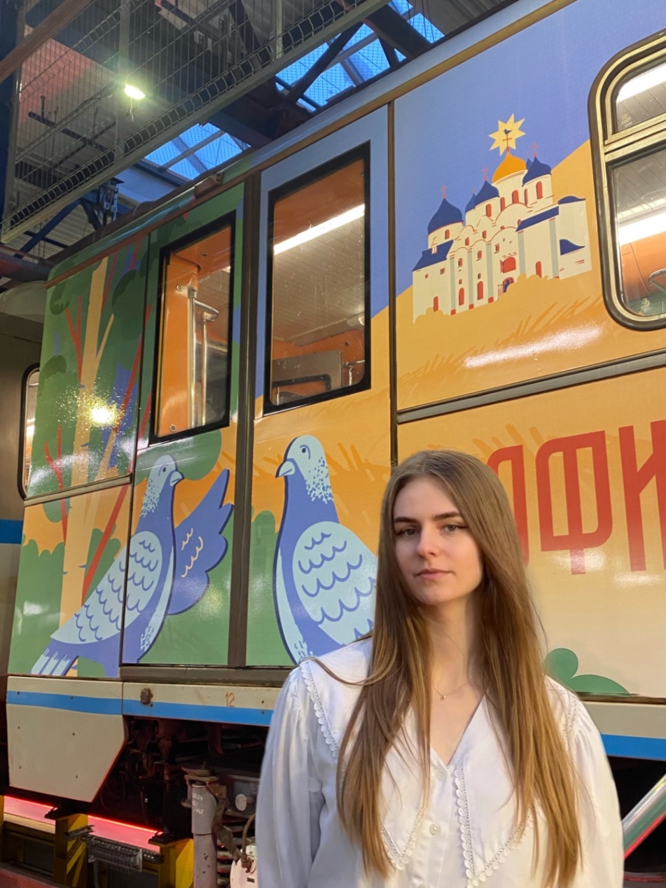 В Московском метрополитене был запущен новый тематический поезд, который превращает каждую поездку в увлекательное путешествие по Великому Новгороду и его окрестностям. Дизайн вагонов был разработан туристическим офисом «Русь Новгородская», а одним из ключевых участников проекта стала выпускница нашего института Анастасия Андреева.