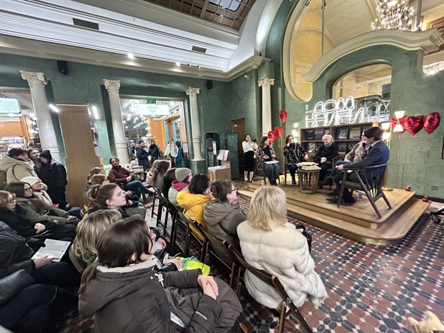 В одном из самых знаковых мест Северной столицы, В Санкт-Петербургском Доме книги прошла творческая встреча преподавателей кафедры графики Высшей школы печати и медиатехнологий СПбГУПТД, членов Союза художников, с посетителями магазина. Встреча была организована в формате ток-шоу, и особая атмосфера старейшего книжного магазина вдохновляла гостей на живую беседу.