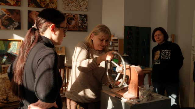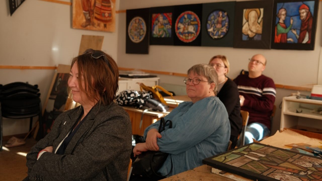 Сергей Хвалов продемонстрировал технику создания витражей. Ирина Баранова рассказала про свойства композиции мозаики. Мария Докучаева объяснила принципы создания текстильных украшений. Мария Давыдова провела занятие по эмали.